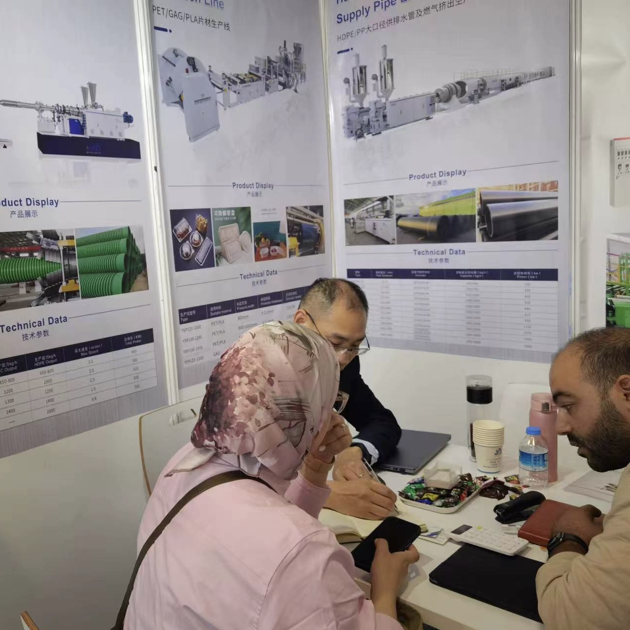 展会上,我们见到了许多新老朋友,同时三亿(中国)一站式服务平台的展台也吸引了众多塑料挤出制品行业人士,他们纷纷驻足了解我们的塑料挤出生产线,对三亿(中国)一站式服务平台机械最新研发的技术和设备表现出了极大兴趣。